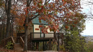 Situated near one of our habitat areas, the cozy Tree House is built on stilts, and it is approximately 15′ from the ground. You can reach the Tree House by a stairway up to a wraparound deck. Additionally, this fun and quaint structure is the perfect escape for those who enjoy cozy comfort and the unique experience of sleeping near the treetops. It is open from March to November. The Tree House sleeps up to 4 guests; however, no children under 5 are allowed in the Tree House.