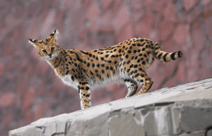 These familiar looking predators are believed to be the first cat to be domesticated! Though similar to the house cat, we can see the differences between them in the African Wildcat’s stockiness and general larger size. They’re known for hunting small animals like birds and rodents. Unfortunately, one of their greatest threats is the domestic house cat. This is due to them breeding with each other so often. Thus, the true African Wildcat is being lost to the muddied gene pool.