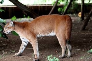 Found only in the tropical forest region of Africa the African Golden Cat is known for being an elusive sight, the first picture of them was taken in 2002. Despite their name, they come in more colors than gold, they can be seen in grayer shades, and even appear with melanism at times. They’re so elusive we aren’t sure on the species status, but they’re known for hunting small forest mammals.