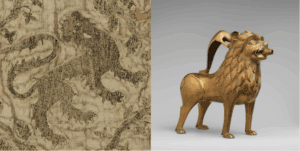 Figure 2 a and 2 b (left to right). Steeple Aston Cope; Victoria and Albert Museum, London. Aquamanile shaped like a lion; Metropolitan Museum of Art.