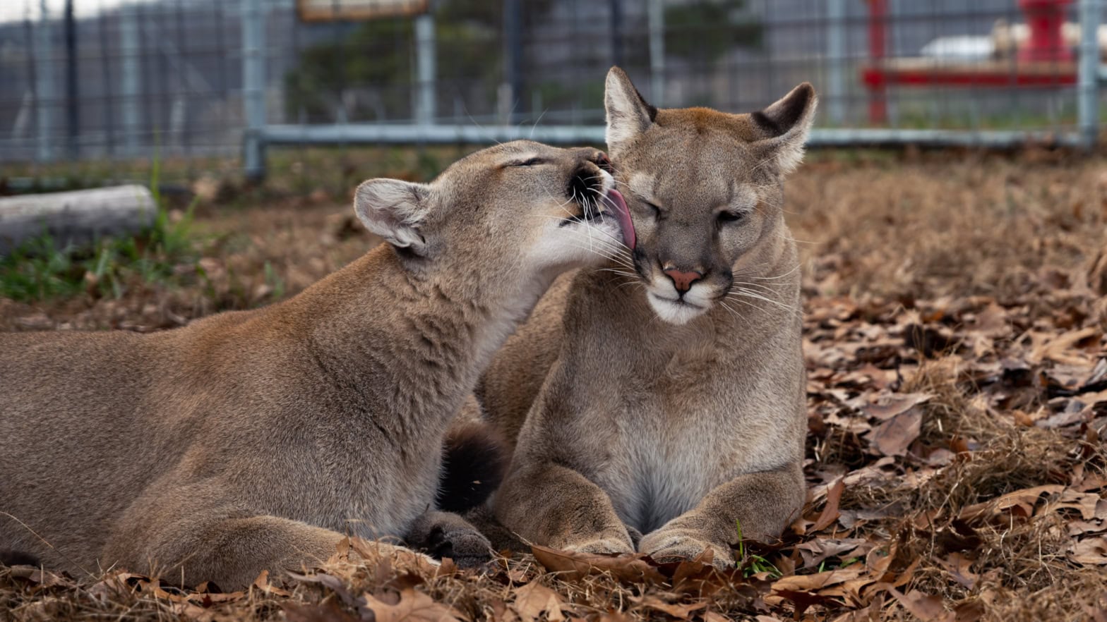 This is also seen when they are head-bunting each other. You’ve probably noticed a housecat headbutting or bumping their head into objects or their humans. This action deposits scent through pheromones and improves social bonds. So our big cats that live together do this to each other, too.
