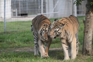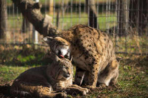 While cats aren’t always known to be the most loving animals, our wild cats here at Turpentine Creek certainly have their ways of expressing affection. The animals here that live together exhibit certain behaviors to indicate their bond. Allogrooming, or social grooming, is something seen in cats, both big and small, that have a close relationship to one another. They help keep each other clean and deposit their scent on each other to improve their bonds.
